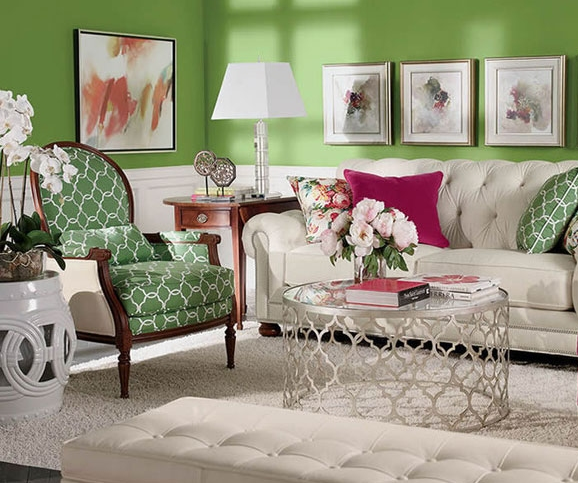 優(yōu)雅的果綠色所呈現(xiàn)出的是一個原始森林世界,那樣雅致卻清新的顏色組成,那樣和諧明朗的顏色配合,是一種視覺上的精致唯美,是一種心理上的舒適和諧,再搭配墻上的工筆掛畫,更是將一種繪畫所表現(xiàn)出光影魅力完全展現(xiàn),明暗之間的對比,色彩之間的調(diào)配,是一種藝術(shù)上的和諧美感,是一種另類的色彩時尚。